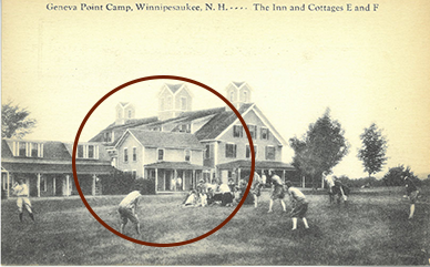 In the early days of the Roxmont Poultry Farm, Cottage E, along with Cottage F, were moved from elsewhere in the Moultonborough area and placed next to Cottage A (known today as Shaw Cottage). They remained their through the Winnipesaukee Inn years. Both Cottages E and F were lived in by workers who helped build the horse barn (which became the Winnipesaukee Inn), an incubator barn (where the Chapel now stands) and other structures that were needed for the poultry farm. Cottage E was eventually moved again to its current location at the end of the Green near the Barn, where it has served as an affordable summer accommodation for guests and staff ever since.
