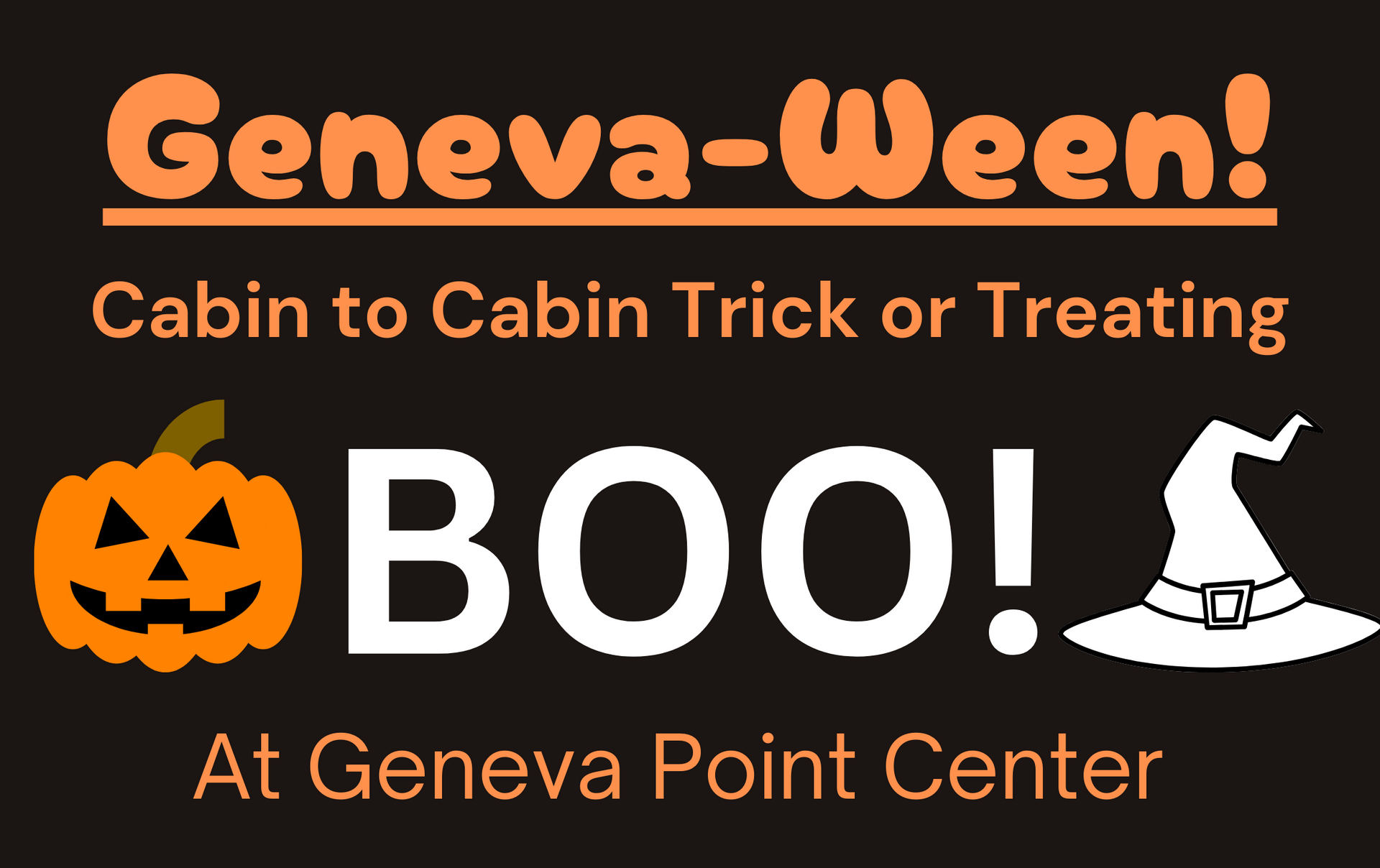 Geneva-Ween is a new annual event launched in 2025 that allows kids and families a safe and easy-walking, cabin-to-cabin, trick-or-treating experience. This event for GPC friends and neighbors in Moultonborough and the surrounding communities is free thanks to the local individual and business sponsors that are helping to make Geneva-Ween scary good. No signup is needed. Just show up ready for fun.