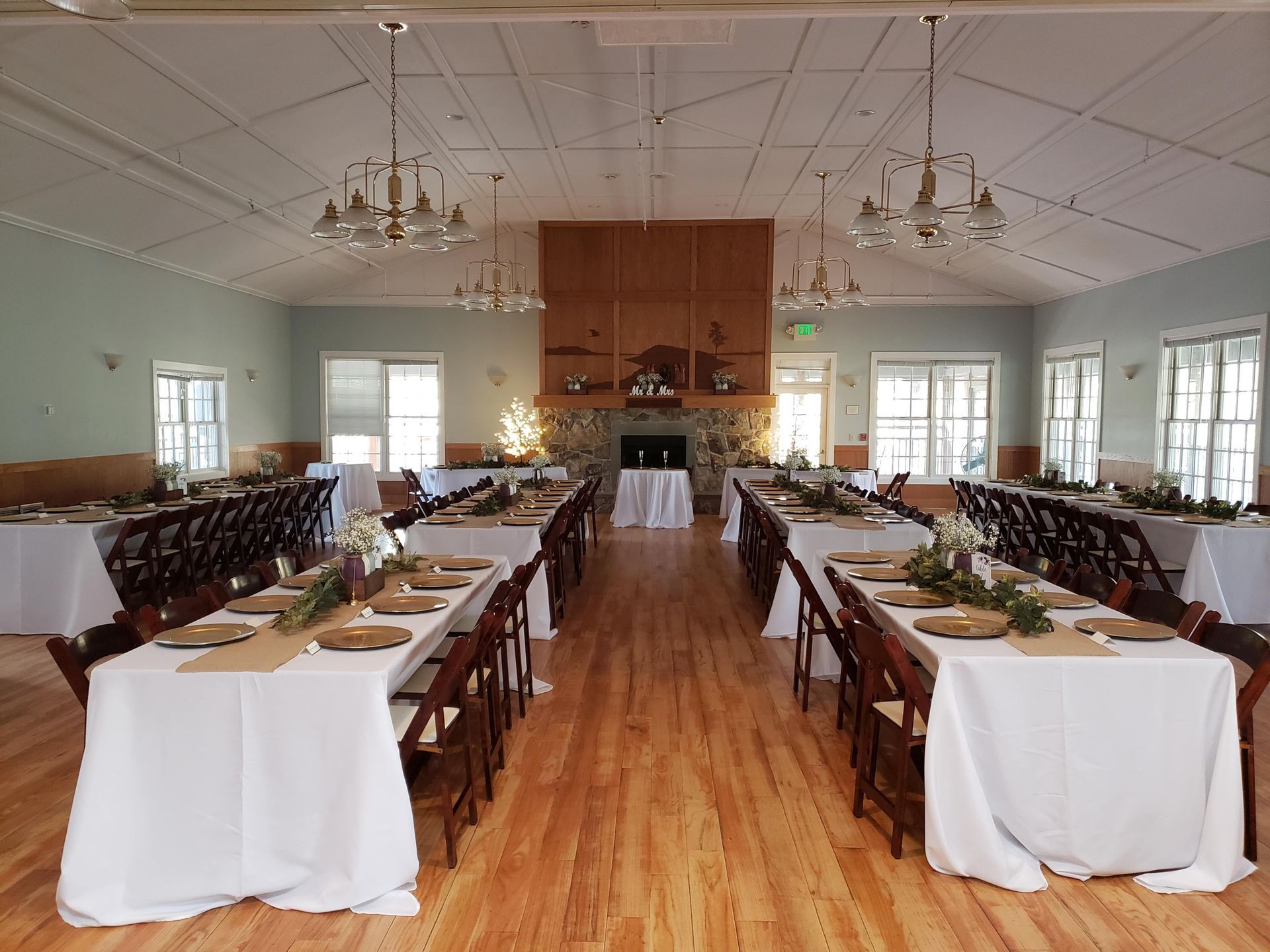 The Meeting House dining area accommodates sit-down meals for up to 200 family members, creating opportunities for formal toasts, family announcements, or presentations about family history.